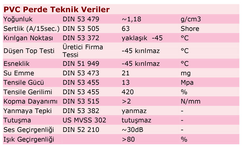 Şerit Perdeleri, hacimler arasında büyük ölçüde ısı transferini kesen ve yüksek oranda nem tutucu özelliğe sahiptir.Tamamen hijyenik olup kolay temizlenir. Montaj aksesuarları 304 kalite krom nikelden üretilmektedir. Her tip kapı sistemine kolay ve hızlı montaj olanağı sağlar.Sıkıştırılmış PVC’ den üretilen şerit perdeler esnek, saydam, iyi yalıtım sitemine sahip, dayanıklı ve alev beslemez yapıdadır.Şerit kapı bini tipinin seçiminde; çevre şartları (basınç, rüzgar vs.), iki ortam arasında ısı farkı, gibi konulara dikkat edilmesi gerekir.